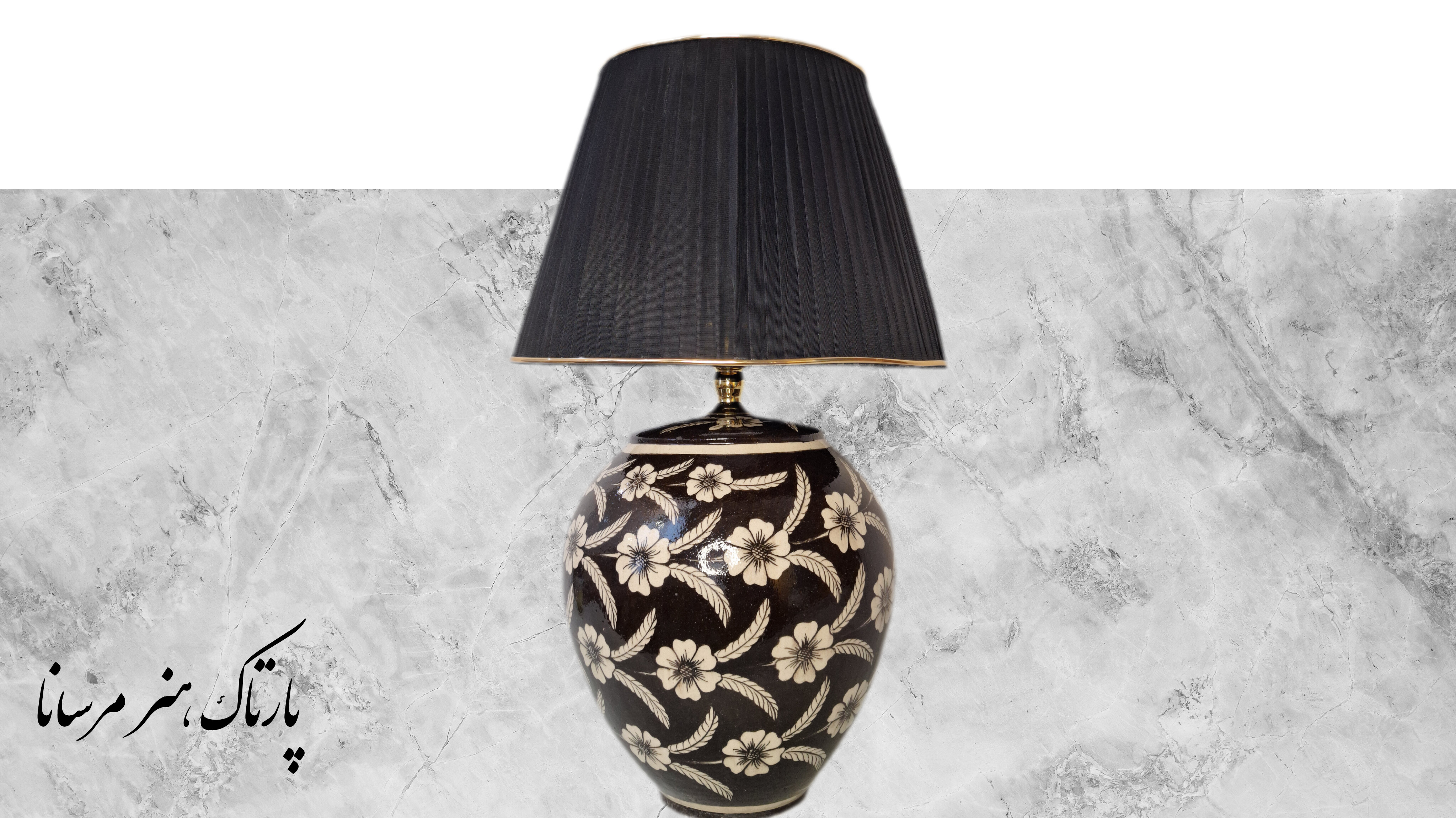 آباژور سفالی نقاشی زیر لعابی طرح گل برجسته مشکی درباری مدل A007