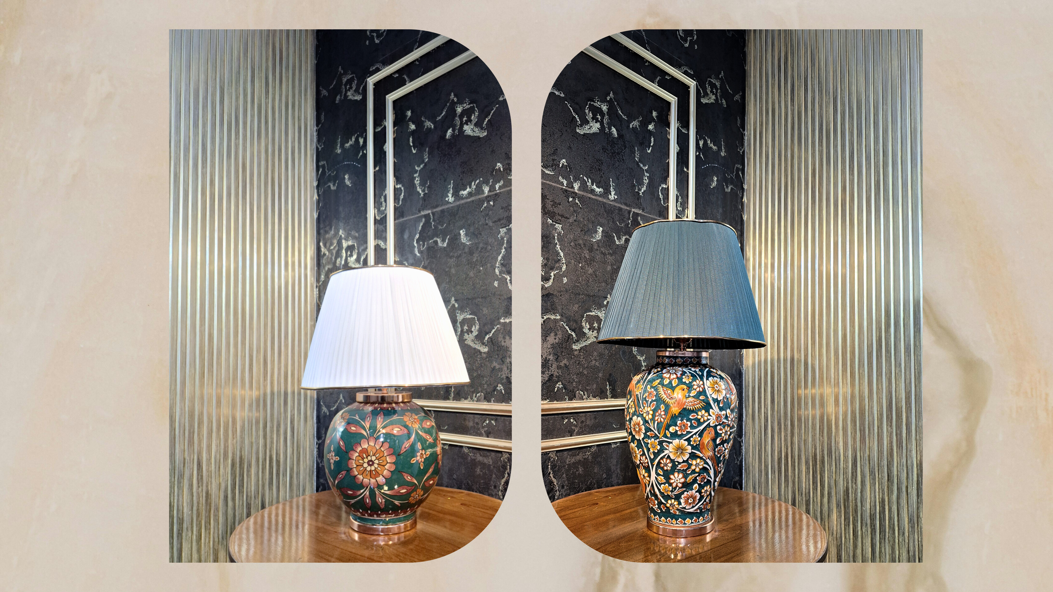آباژور سفالی نقاشی زیر لعابی پاستیلی (سایز کوچک) مدل C005
