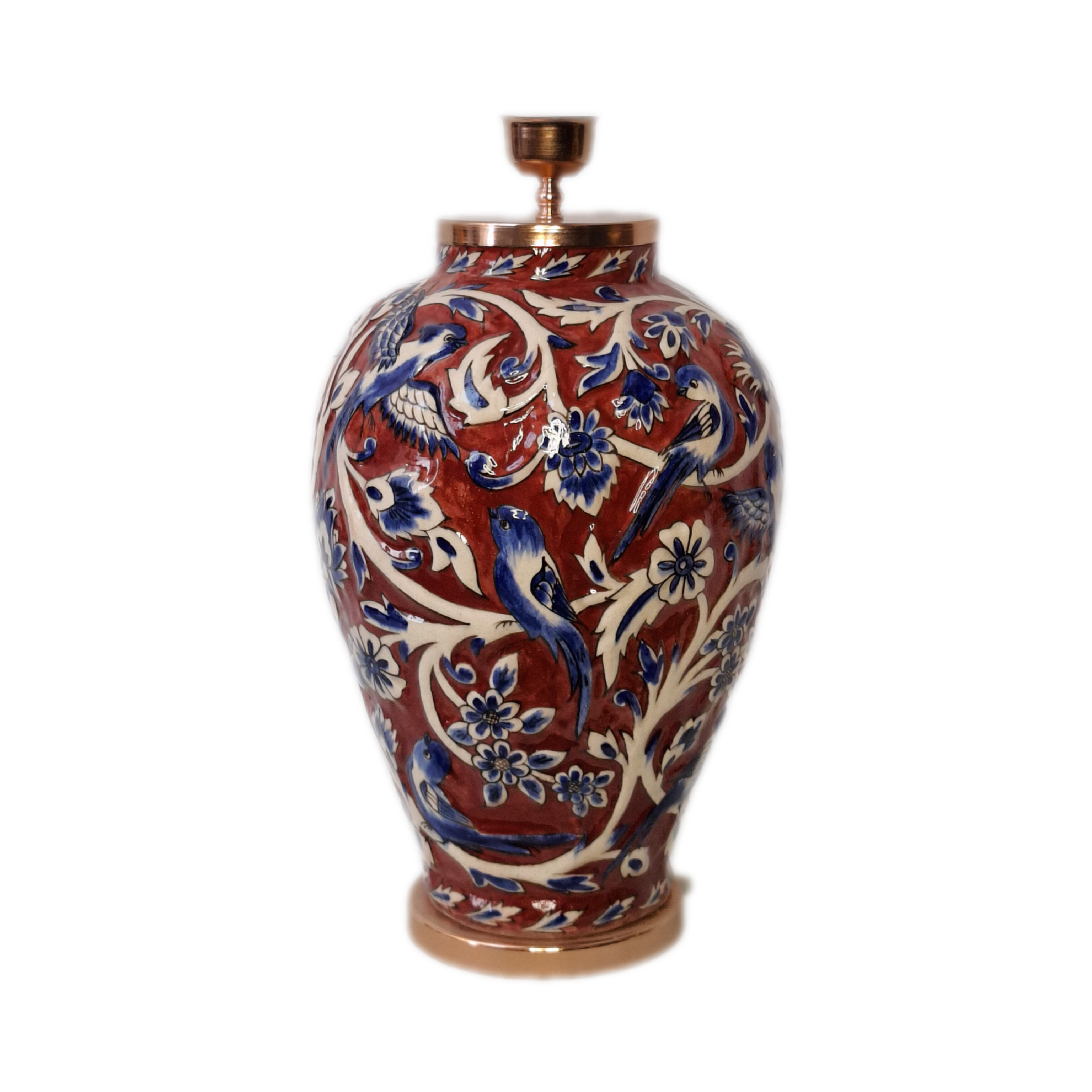 آباژور سفالی نقاشی زیر لعابی بیانگر تمدن و فرهنگ ایران و هنر دست هنرمندان ایرانی .