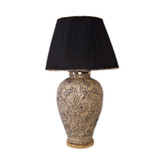 آباژور سفالی نقاشی زیر لعابی طرح گل برجسته سیاه قلم مدل A008