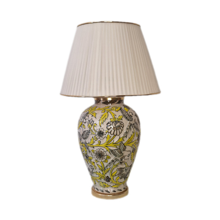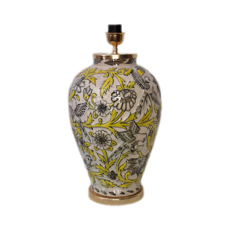 آباژور سفالی نقاشی زیر لعابی طرح گل برجسته زرد و فیلی مدل A002