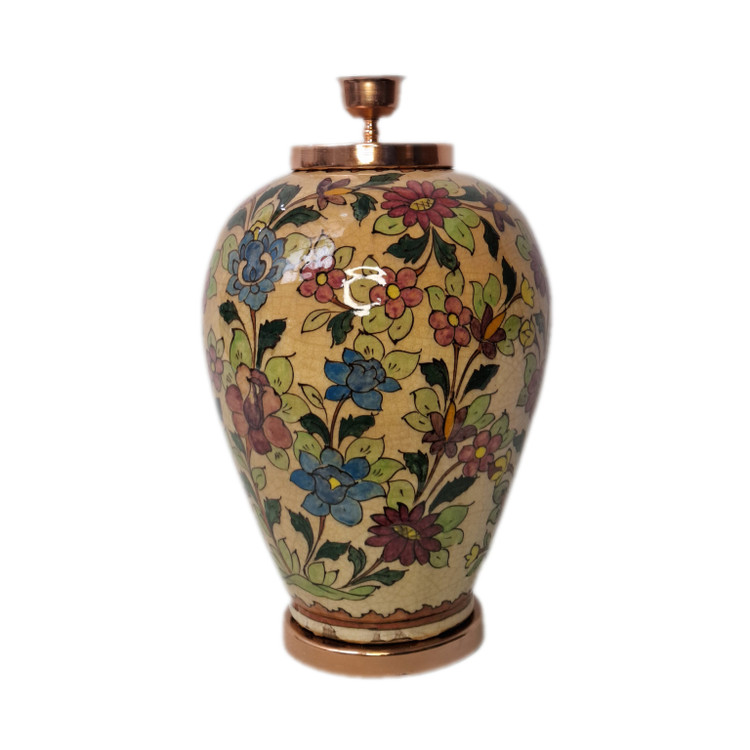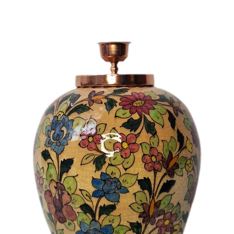 آباژور سفالی نقاشی زیر لعابی بیانگر تمدن و فرهنگ ایران و هنر دست هنرمندان ایرانی .