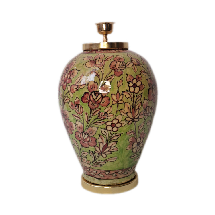 آباژور سفالی نقاشی زیر لعابی بیانگر تمدن و فرهنگ ایران و هنر دست هنرمندان ایرانی .